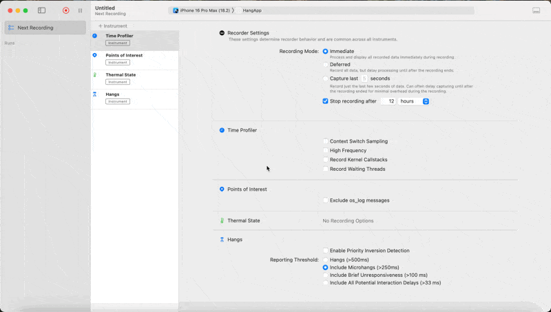 Detecting a UI Hang using Instruments